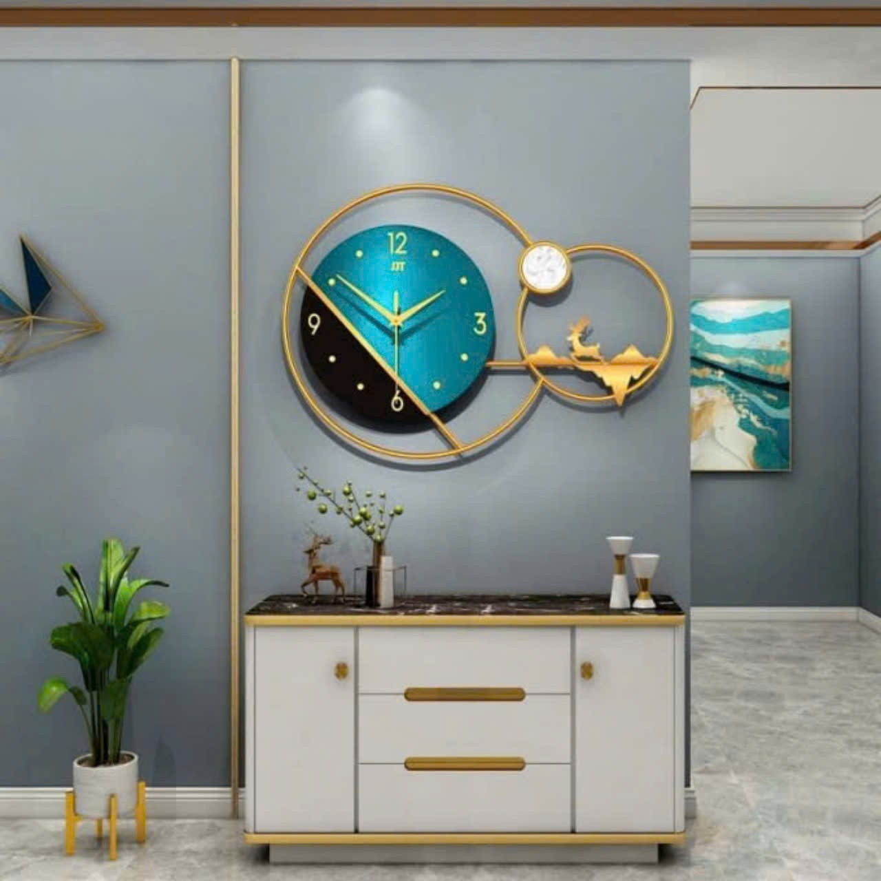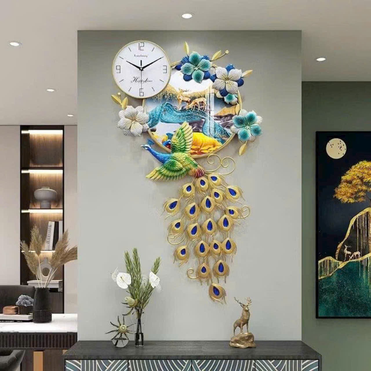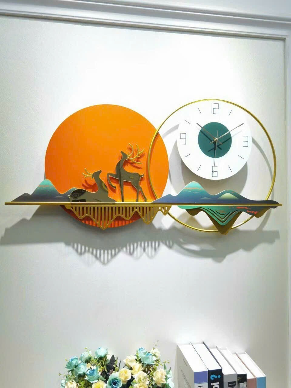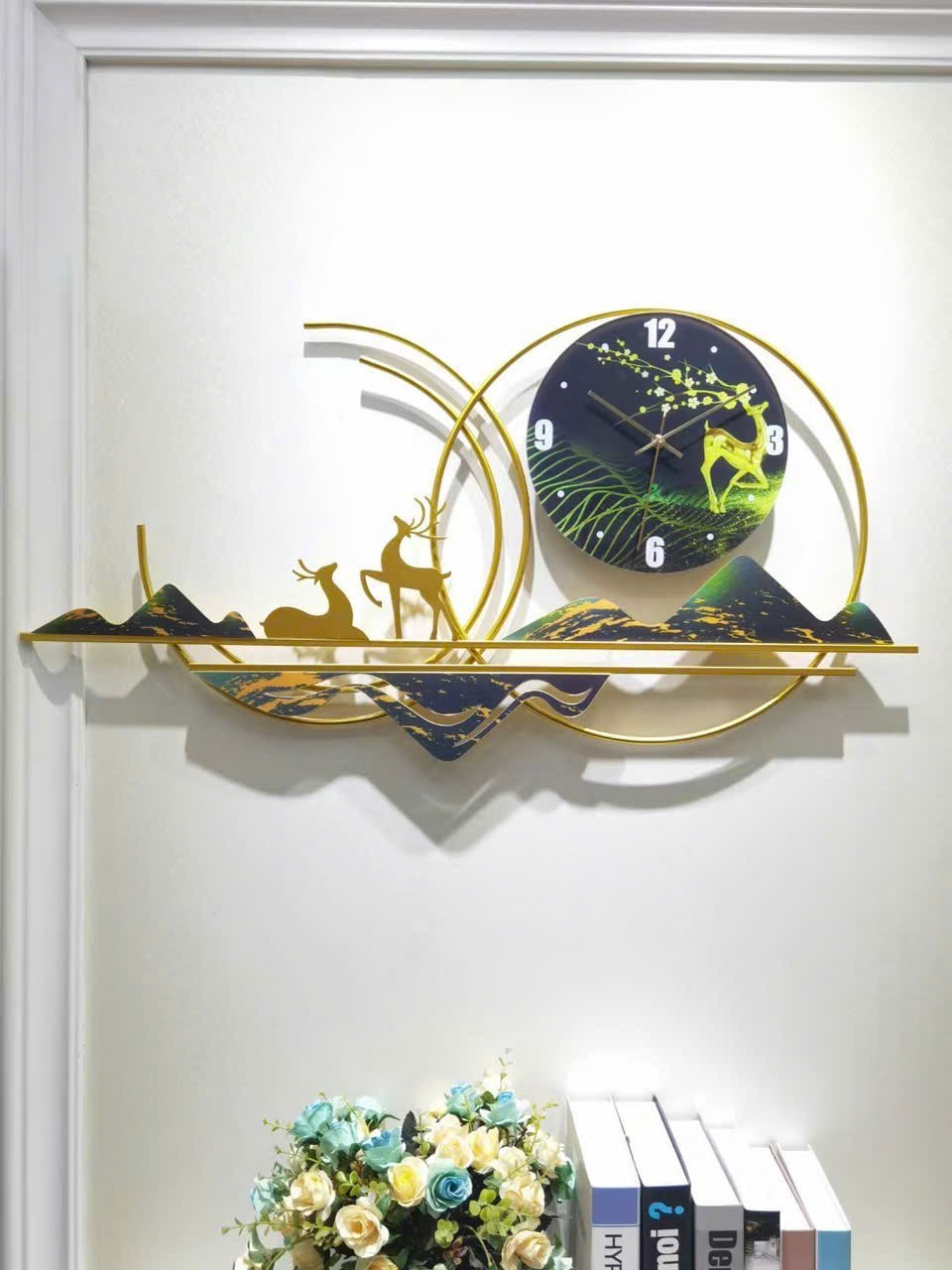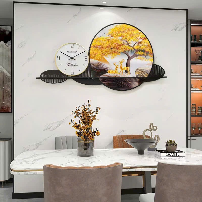Đồng hồ decor vây vàng và hươu tài lộc DH 0137