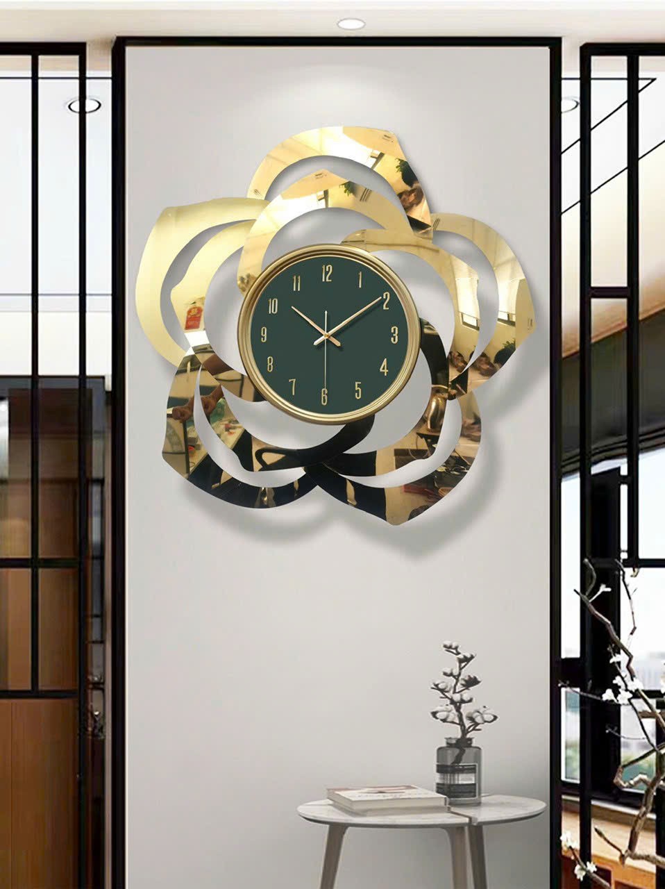 Đồng hồ decor hoa lá hiện đại